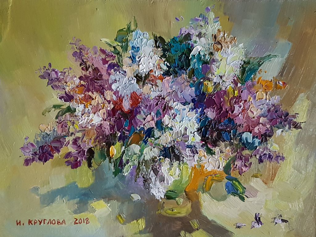 Круглова Ирина "Ароматы мая", двп / масло, 14 х 19 см., 2018 г.
