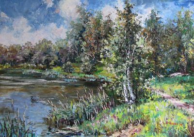 Круглова Светлана "Берёзы у пруда", холст / масло, 50 х 70 см., 2016 г.