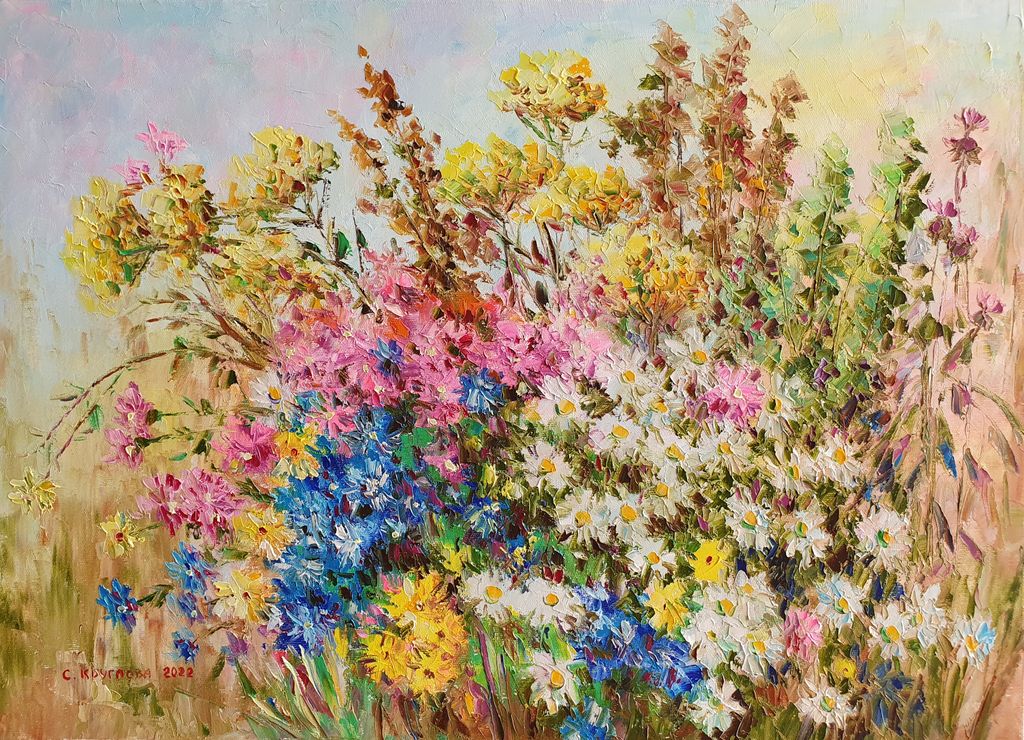 Круглова Светлана "Бессмертник и васильки", холст / масло, 50 х 70 см., 2022 г.