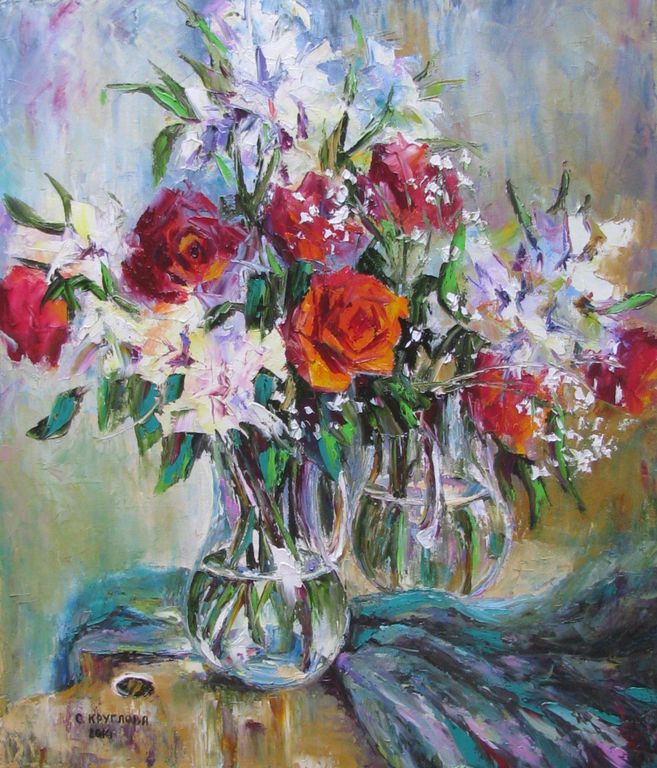 Круглова Светлана "Букет на палитре", холст / масло, 70 х 60 см., 2014 г.