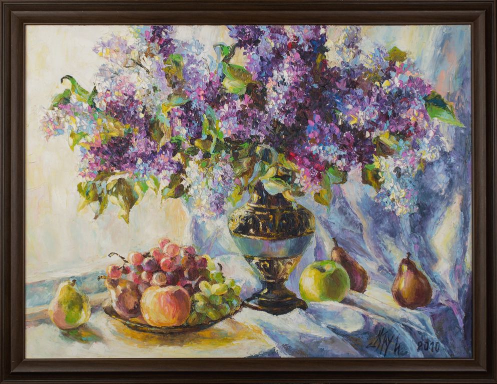 Как красива обволакивающая дурманом - эфиром сирень, спутница лета. Пышные гроздья лиловых оттенков обещают счастья дни. Спелые фрукты полны сладости и соков земли.
