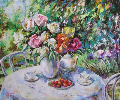 Круглова С. Н. "Чай с клубникой", холст / масло, 70 х 85 см., 2012 г.