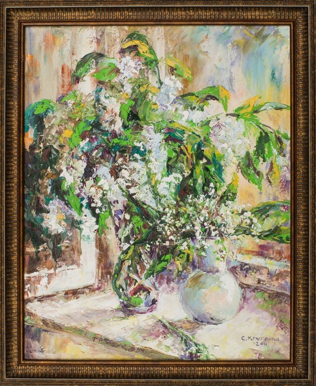 Круглова С. Н. "Черёмуха и ландыши", холст / масло, 50 х 40 см., 2011 г.