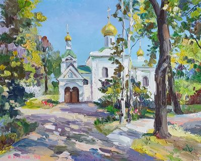Круглова Ирина, "Храм Святой Троицы при детской гор. больнице им. Святого равноапостольного князя Владимира", оргалит / масло, 29 х 36 см., 2019 г.