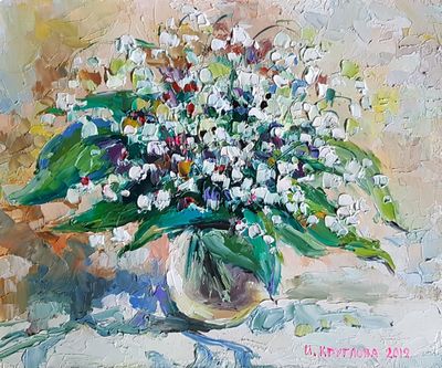 Круглова Ирина "Ландыши", оргалит / масло, 16 х 19 см., 2019 г.