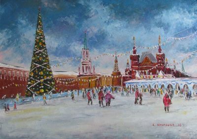 Круглова Светлана. "Ёлка на Красной площади", холст / масло, 50 х 70 см., 2016 г.