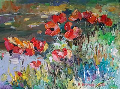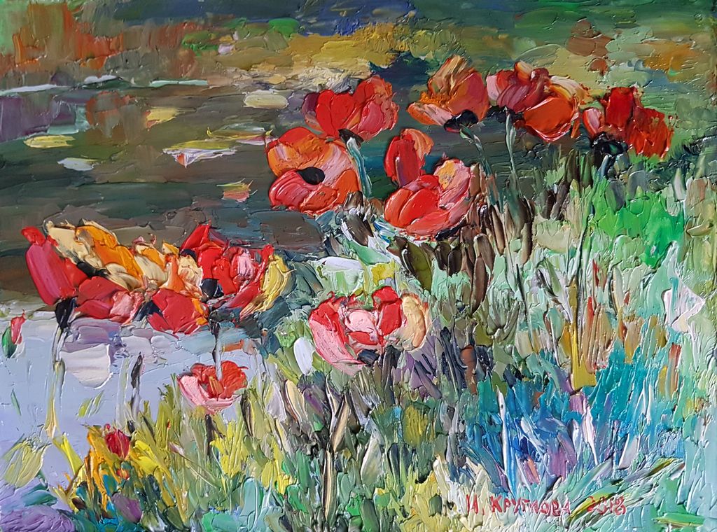 Круглова Ирина "Маки в поле", двп / масло, 15 х 20 см., 2018 г.