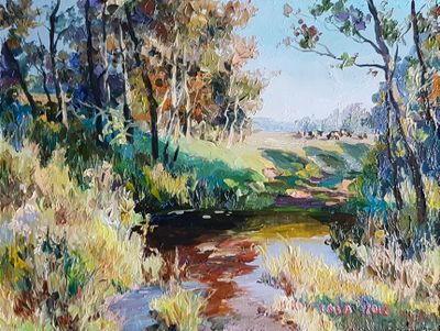 Круглова Ирина "Озеро", двп / масло, 14 х 20 см., 2018 г.