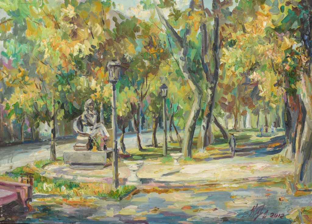 Круглова И. А. "Памятник народной артистке СССР Валентине Леонтьевой. «Тетя Валя» в Ульяновске", холст / масло., 50 х 70 см., 2012 г.