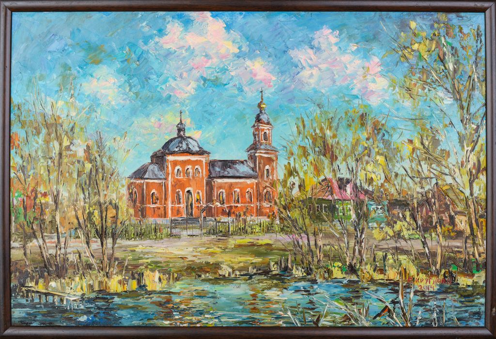 Круглова Светлана "Подолье. Храм Воскресения Словущего. Село Сертякино", холст / масло, 40 х 60 см., 2014 г.