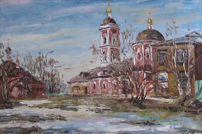 Круглова Светлана. "Покровский храм на Городне", холст / масло, 40 х 60 см., 2015 г.