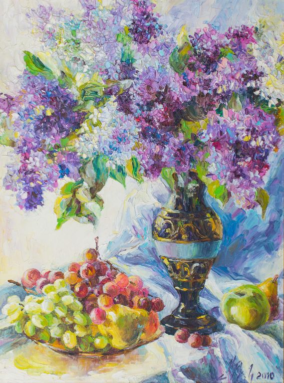 Круглова И. А. "Сирень и виноград", холст / масло, 70 х 50 см, 2010 г.
