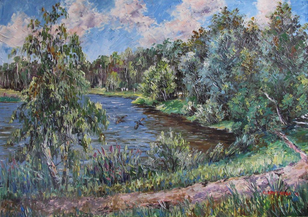 Круглова Светлана. "Утиный переполох", холст / масло, 50 х 70 см., 2016 г.