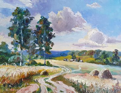 Круглова Ирина "В поле", оргалит / масло, 23 х 30 см., 2019 г.