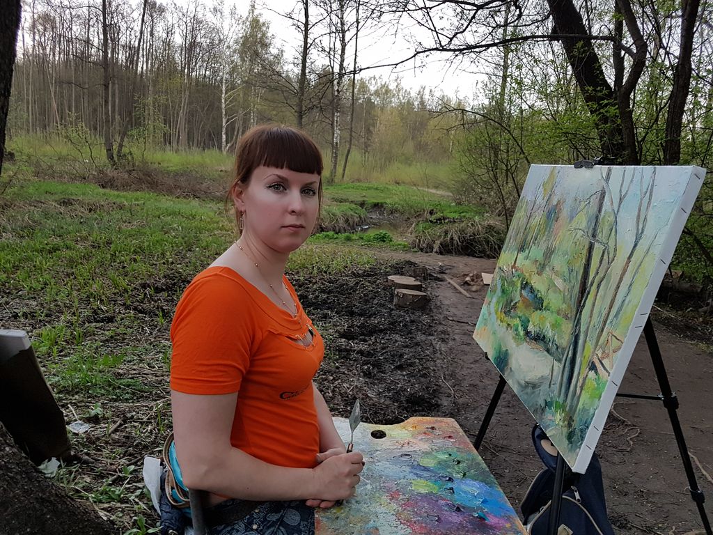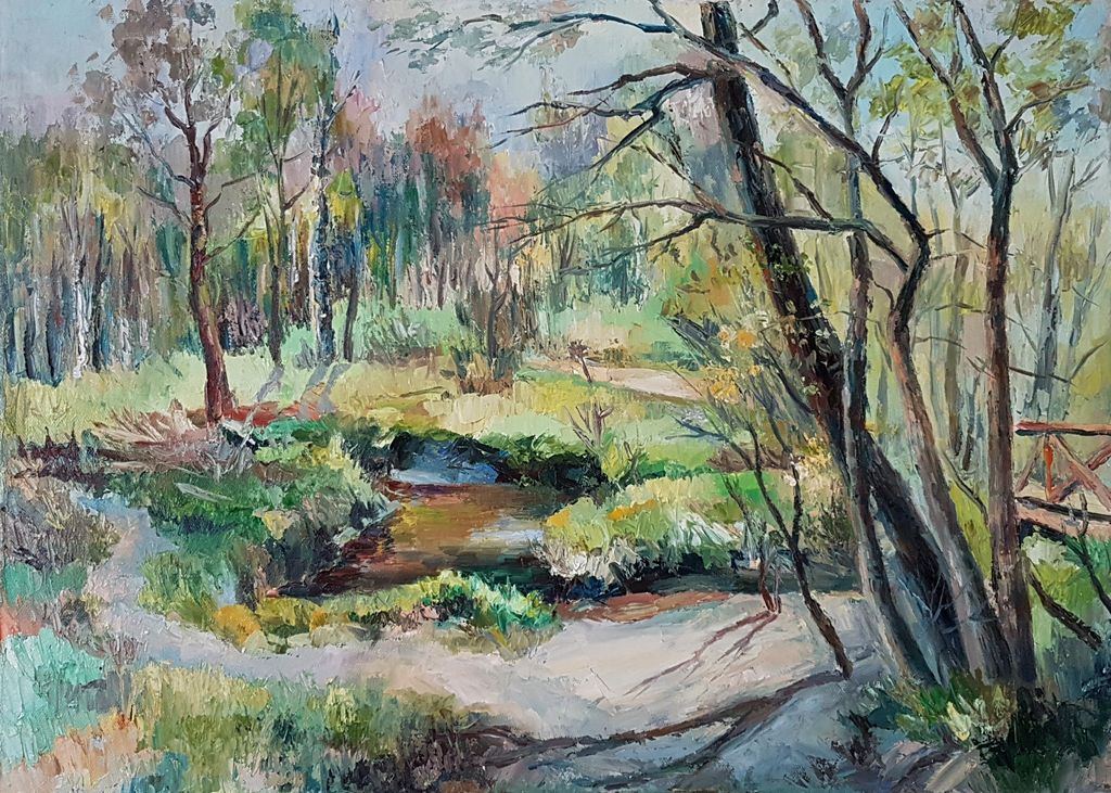 Эту картину я писала на пленэре в Измайловском парке. Ранней весной, еще листья на деревьях до конца не выросли. Зелень светлая, нежная.