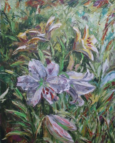 Круглова Светлана. "Жёлтые и белые лилии", холст / масло, 50 х 40 см., 2015 г.