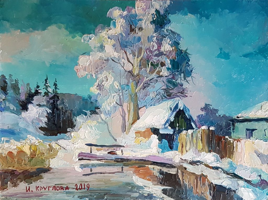 Круглова Ирина "Зимнее очарование", двп / масло, 15 х 20 см., 2019 г.