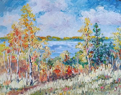 Круглова Светлана "Золотые кружева", оргалит / масло, 17 х 21 см., 2019 г.